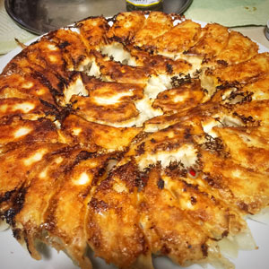 焼き最高。パリパリを噛むとじゅわ〜。玉ねぎと挽肉の、ちょっとシューマイぽい餃子。酢醤油にラー油はもちろん、辛子も合う。