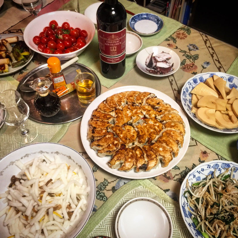 実家で過ごす正月休みも最後の夜。餃子の焼き担当は母親。名人!