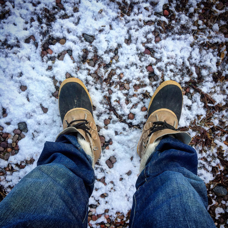 夕方、お気に入りのSORELのカリブーを履いて雪の中を散歩。