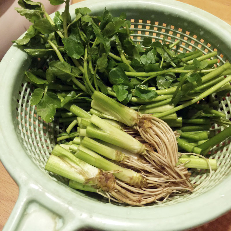 こんなに寒いと夕食は鍋以外の選択肢はありません。今宵はセリ鍋。宮城ではセリの根まで食べるのが流行。