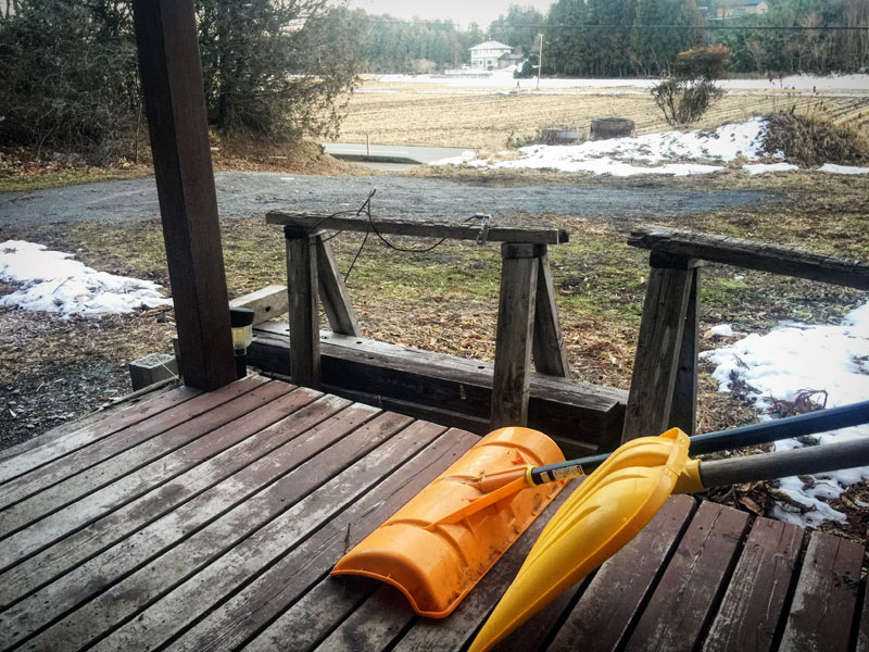 日陰にはまだ雪。