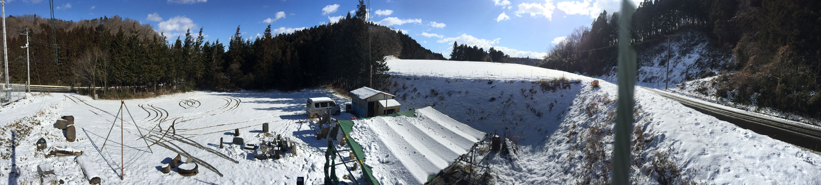 昨晩の雪で仕事場が真っ白になったのでまた車でハートを描いてみた。この前は前進で初めて途中からバック。今回はバックスタートにしたら少し形が崩れてしまった。