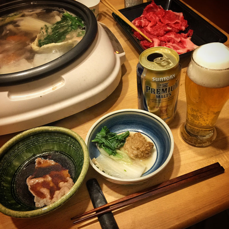 今宵の居酒屋我家はしゃぶしゃぶです。日本全国、恵方巻き一色の用ですが、我が家では公式行事になっておりません。自分の子どもの時にすでにあったモノ以外は。ボジョレーヌーボーとかハロウィンとかなかったじゃん(笑)