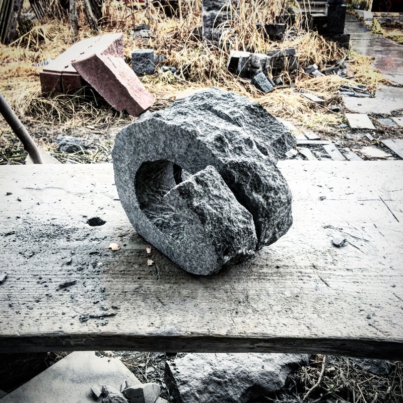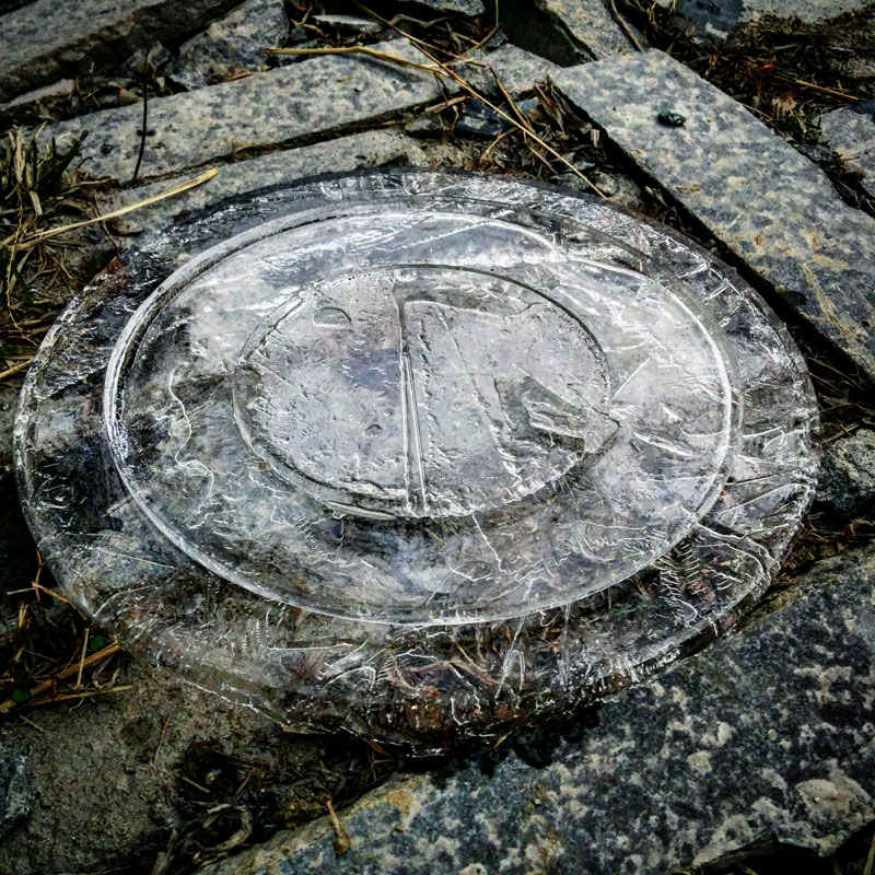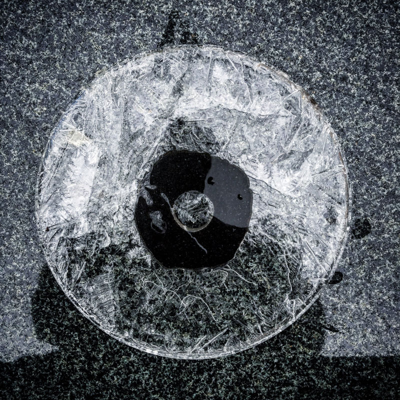 石と氷。石のテーブルの上に黒御影石の輪を置いて、そこに丸い氷を置いて。