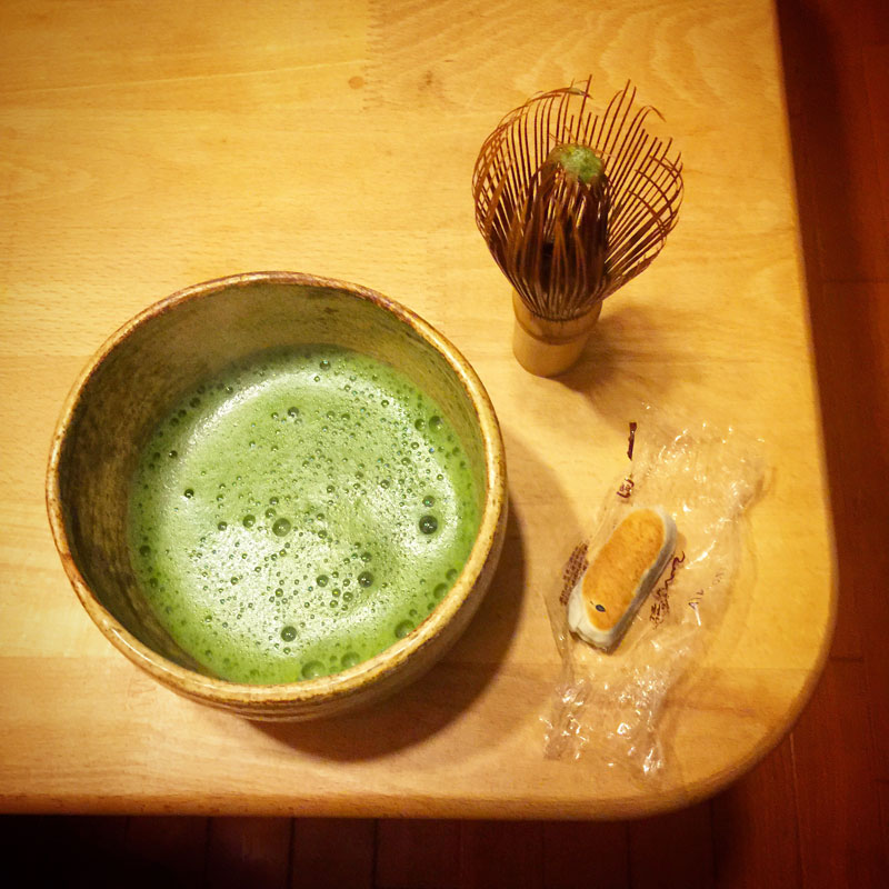 両口屋是清の和菓子、最後のひとつ(泣)抹茶を点てていただきます。