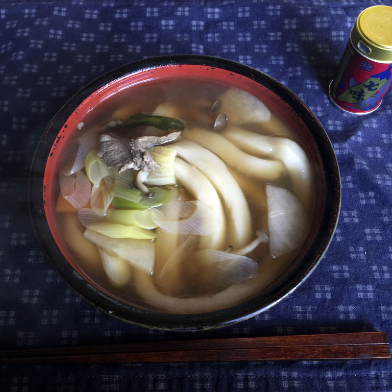 いただいた打饂飩の昼食。これ美味しい!はまった!