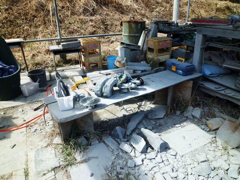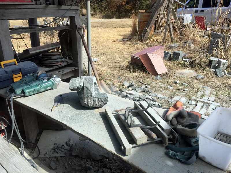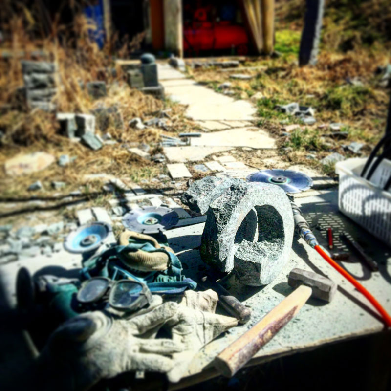 ふたつ同時に作っている石彫「RA SE N」のふたつめ。