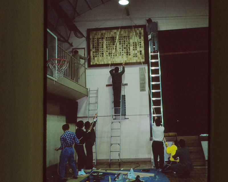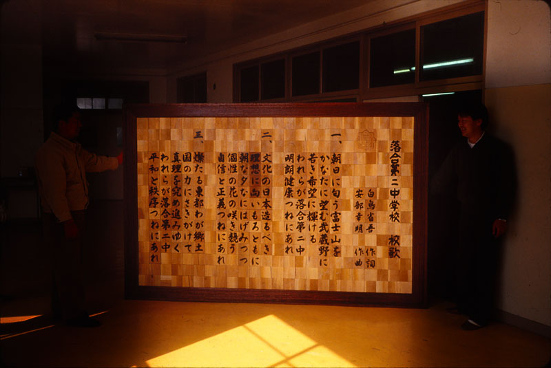 ちなみに今年の写真は建て替えた後の体育館の写真。体育館は建て替えられても、この卒業記念制作は大事に掛け替えられて今も新しい体育館の壁で生徒を見守ってくれている。(これらの写真は、ポジフィルムで撮影した写真を探してスキャンした)