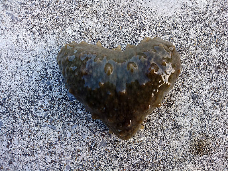 僕の周りだけじゃなくて九州やアメリカ!でも、同じ時にハートを探していた人がいたって、それだけでハートな気持ちになる出来事でした。facebookでもいろいろアップしてくれた方も、ありがとう。下のふたつの写真は立て続けにアップされて衝撃的だったので許可を得て転載。ネットで出会い、天草木目石をプレゼントしてくれた九州の天草・松島の浦田石材彫刻店、浦田 伸昭社長のハートの形のナマコと、ハートの形にご自宅の木を剪定した写真。