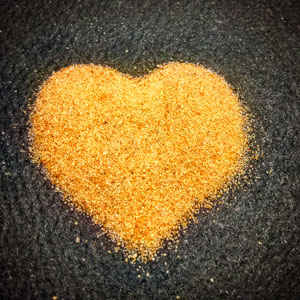ナミブ砂漠の砂のハート。赤くてとても細かい砂。