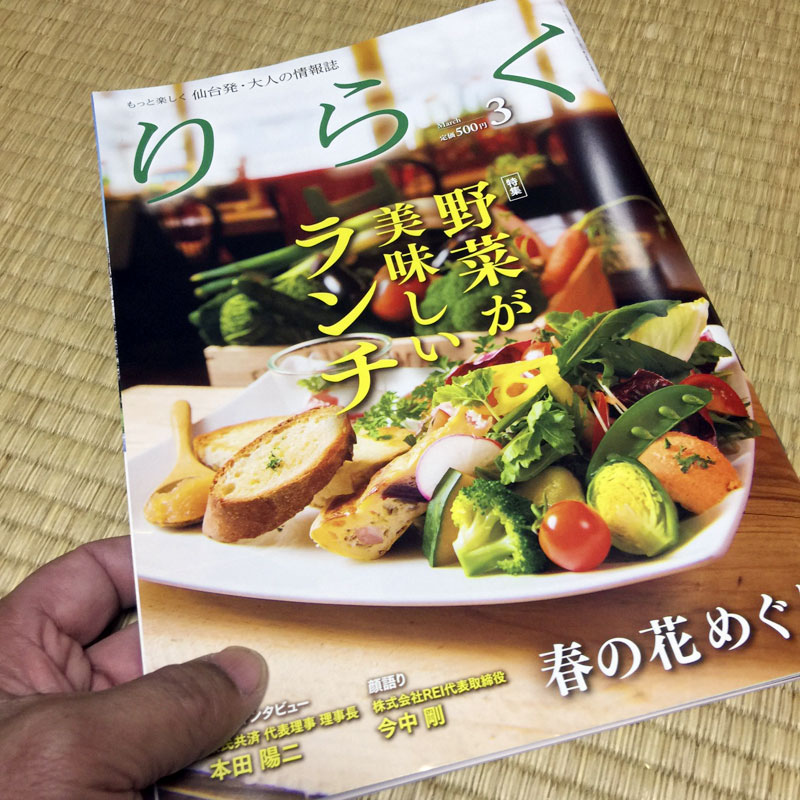「有限会社しんせい」という石屋さんの社長さんでした。仙台発・大人の情報誌『りらく』にも連載を持っている方で「りらく」の最新号をいただいてしまいました。連載のページの左上には友人の夕深さんのじぞうもじも!