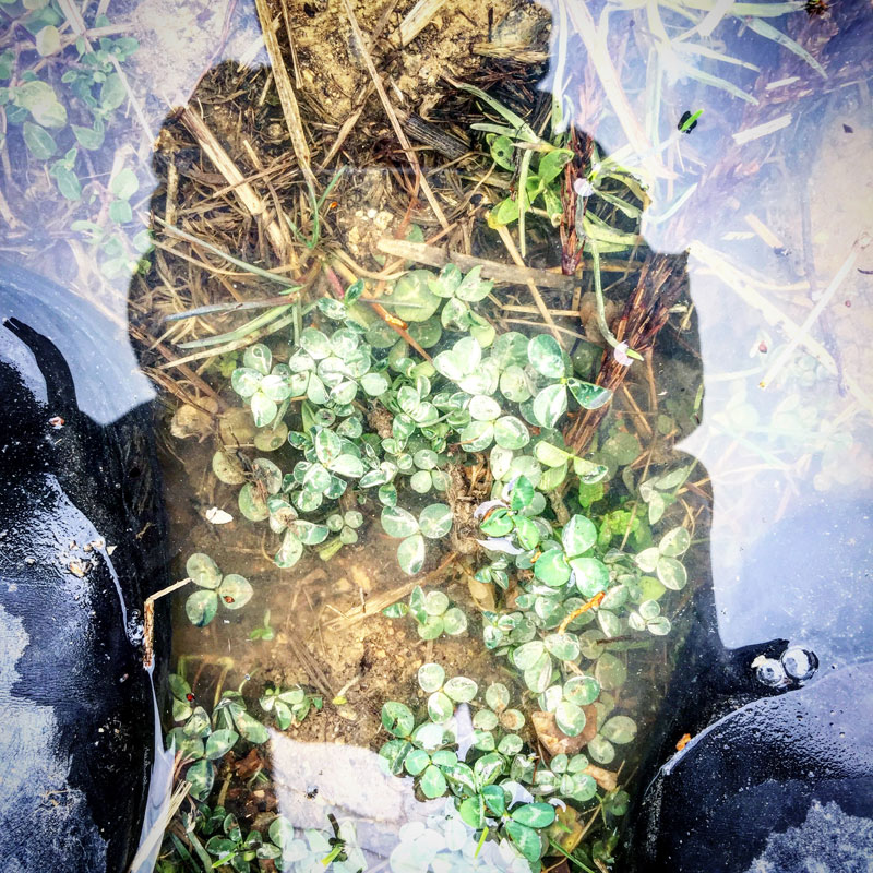 水たまりに沈む草。