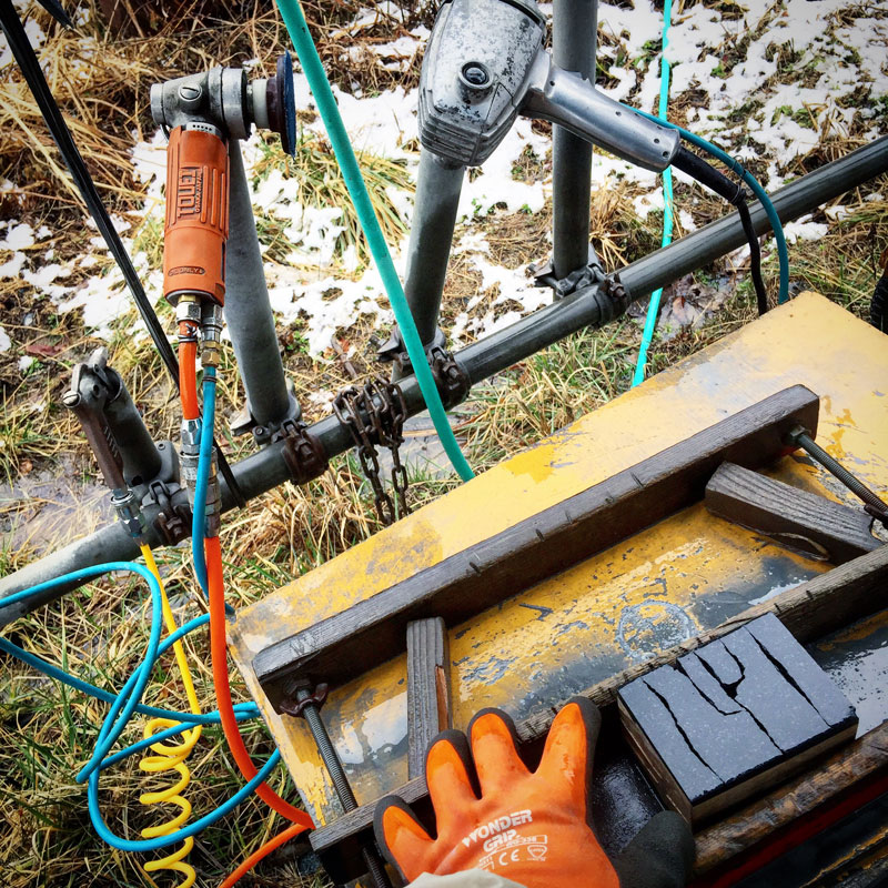 雪が降った屋外での石の水磨きは辛かった。大地が冷え切ってて長靴の中の指が痛い。それでも目の前の水はいつまでも水で氷にならないし、道具も凍らないから春に近づいてるんだな。