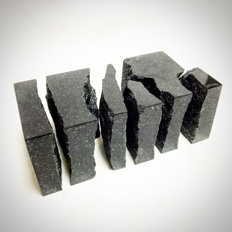 今日、雪の中で磨いていた黒御影石。金色の箔を貼って、元のように組み合わせれば「BORDER」という作品になる。その前に、磨きで濡れた石を乾かすために、隙間を空けて並べるのだけど、この状態がとても好き。このまま作品にしたくなる。どうして僕はこんなに「隙間」に惹かれるんだろう。