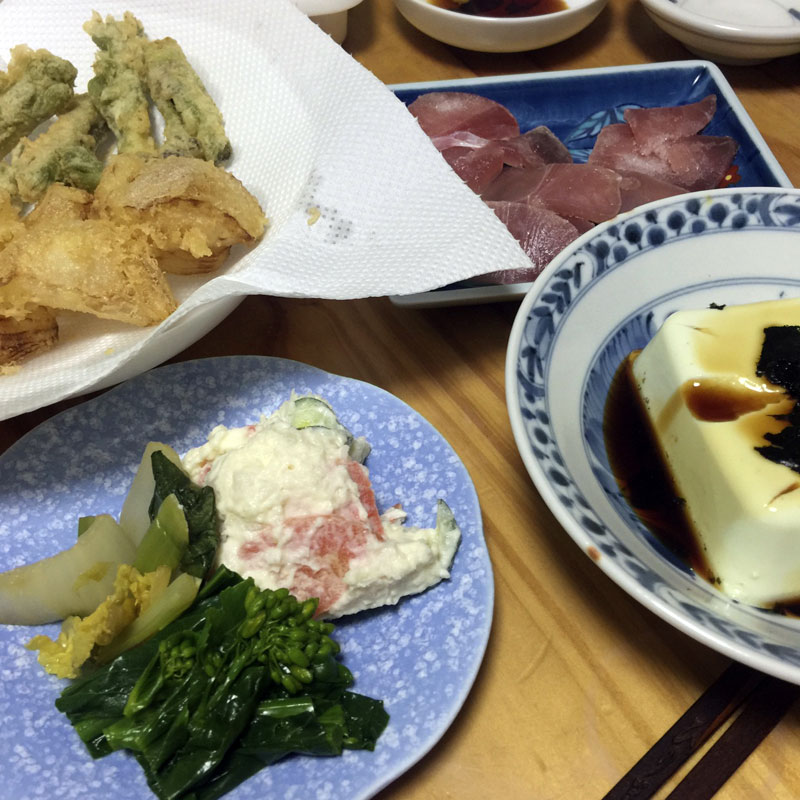 夕食のカミさんのお母さんが摘んだ菜の花がとても美味しかった。ほんのり苦くて春の味。