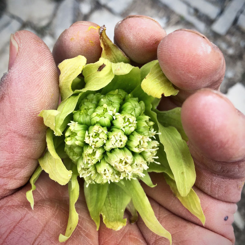仕事場の土手のふきのとうも、どんどん薹(とう)がたってきた