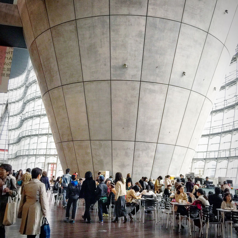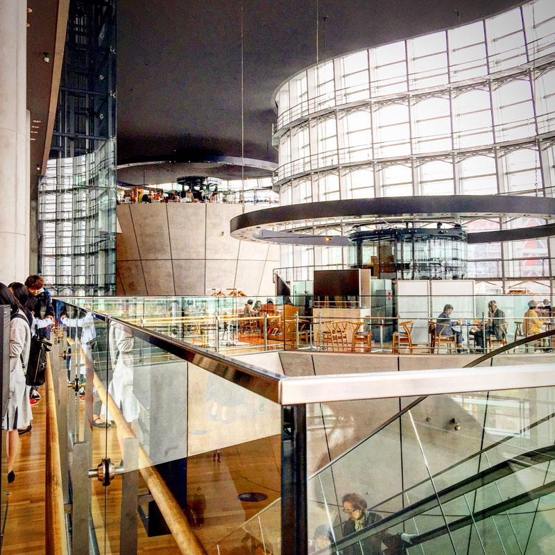 国立新美術館。黒川紀章 設計のこの建物の内部はどこに立っても空間が魅力的。包まれてる感じ。