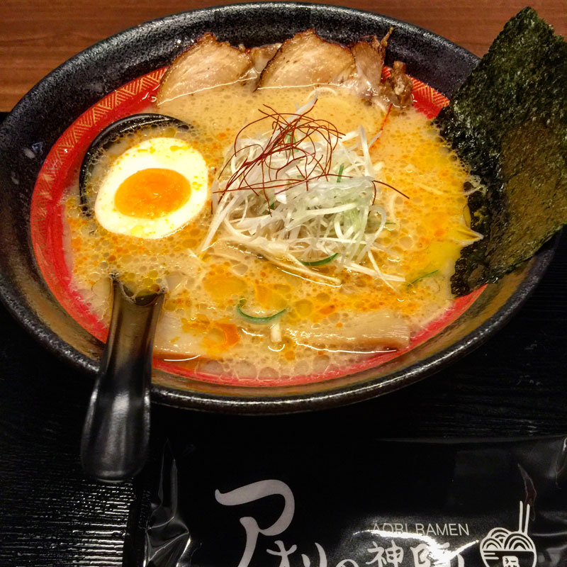 国立新美術館近くのラーメン屋。仕切られたカウンターで食べる。