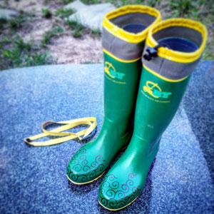 長靴を新調したので石彫の表面によく彫り込んでる植物のツルを、 @edamamet818kaorin さんの真似して、油性マジックで描いてみた。