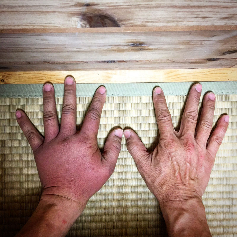 一日経った、本日の左手。見た目はかなりきてるけど、痛みはほとんどないし慣れてるから平気です。うっ血して温かい・笑