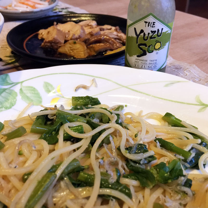しらすと菜の花のパスタ。ユズスコがとても合う!