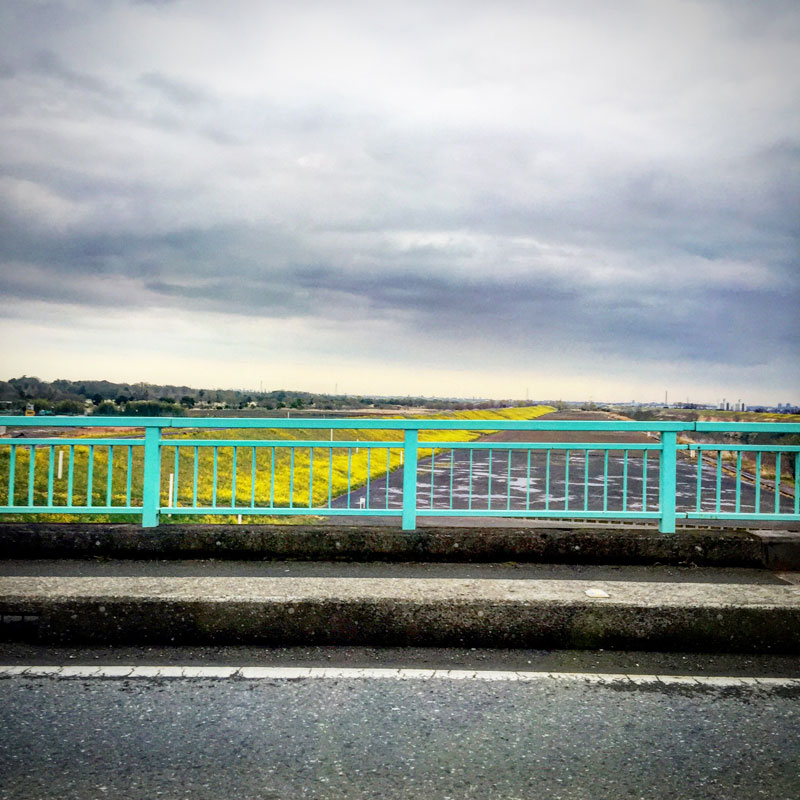 荒川の河川敷は菜の花で真っ黄色。