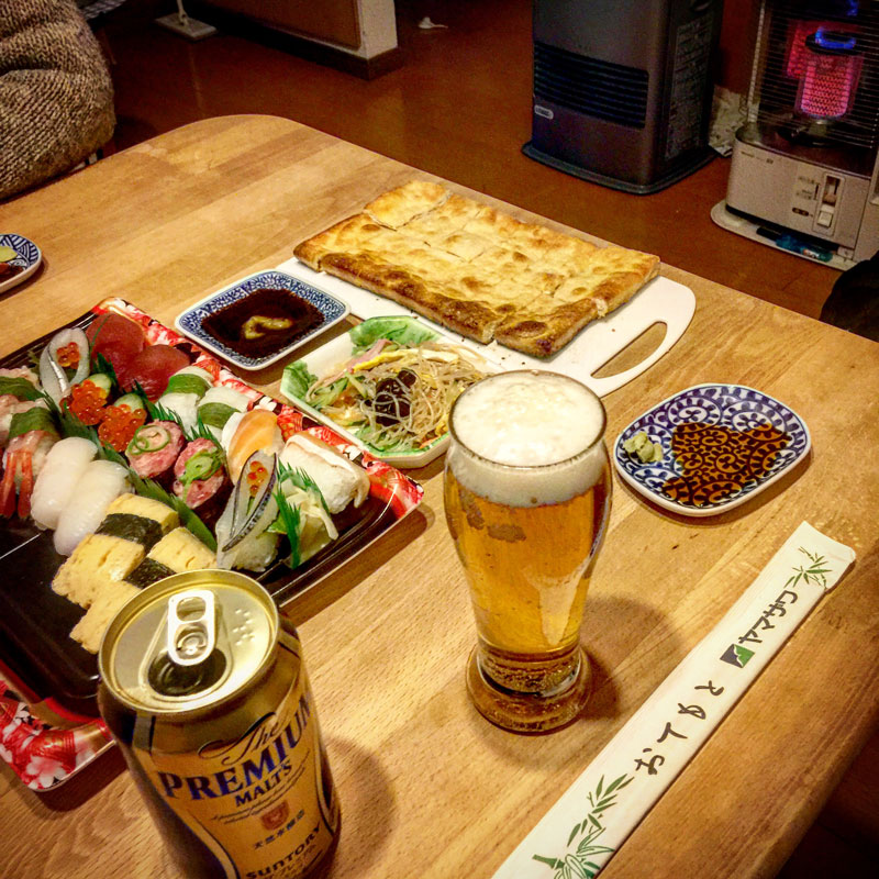 カミさんのお母さんのところで「居酒屋実家」が続いたけど、今日は久しぶりの「居酒屋我家」だけど家に帰ったのは夜の7時。スーパーで割引になったものを肴に。