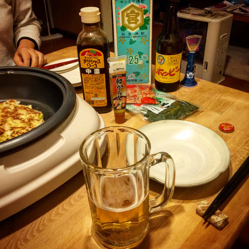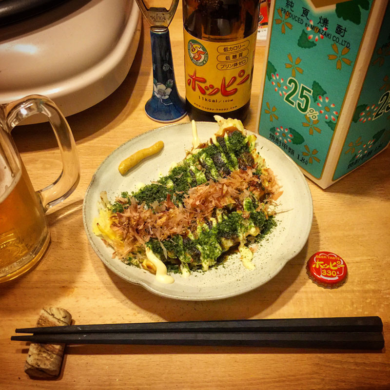 お好み焼き(府中焼き)with ホッピー。