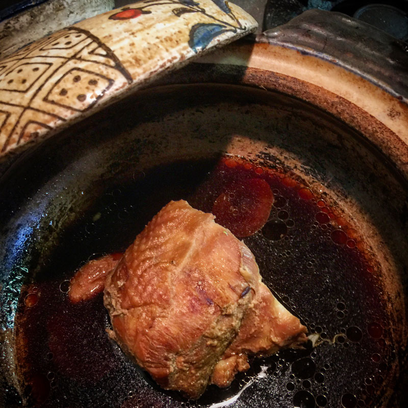 カミさんが家を空ける時に、いつも作り置きしていってくれる定番の、鳥の土鍋煮。おかずにつまみに。タレも美味い。