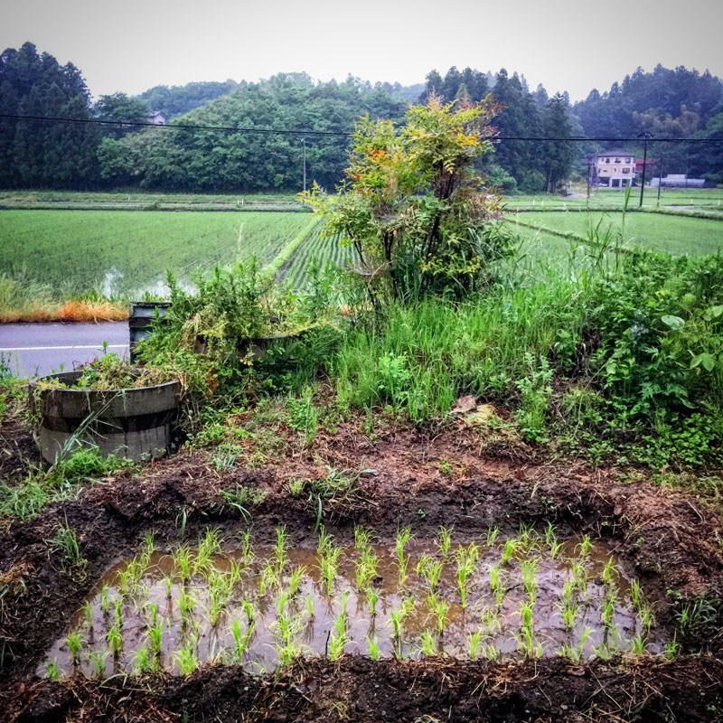 庭の一畳田んぼ。いつも朝と昼に20Lくらい水道から水を入れないといけないので、大変な事を始めてしまったと、すこし後悔もしたけど、見ると何だか癒されるんだなぁ。そして今日は雨で、始めて水やりをしなくても済んだ。