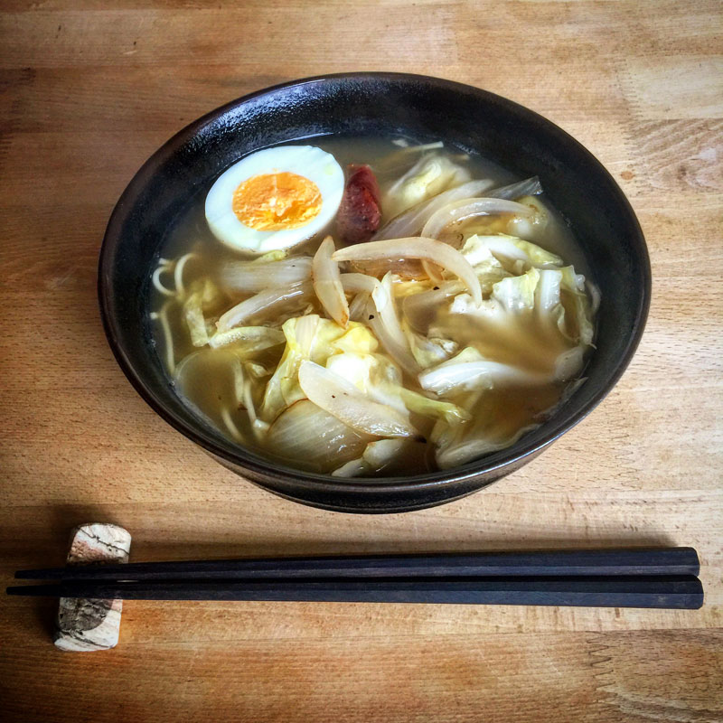 昼飯。マルタイの棒ラーメンでカミさんが具沢山のラーメン作ってくれた。