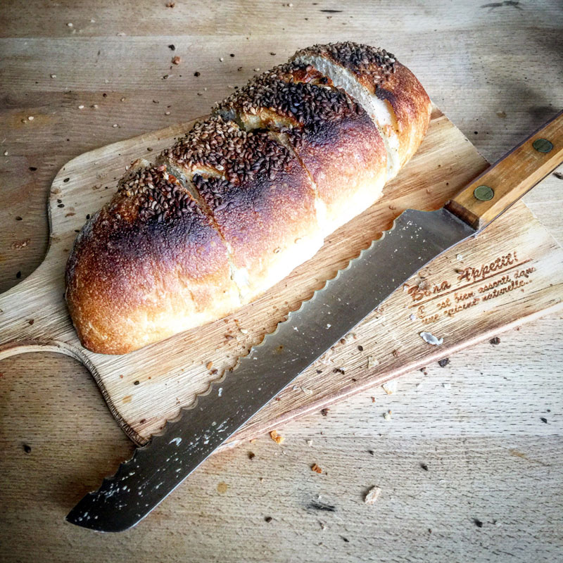 そして地元で一番美味しいパン屋さんの、ごぼうパン。フランスパンの中にごぼうサラダがサンドされてる。カリッとトーストして切ったら、カリカリの皮が散らばりまくり・笑