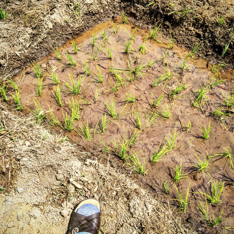 なんか癒される。庭の一畳田んぼ。