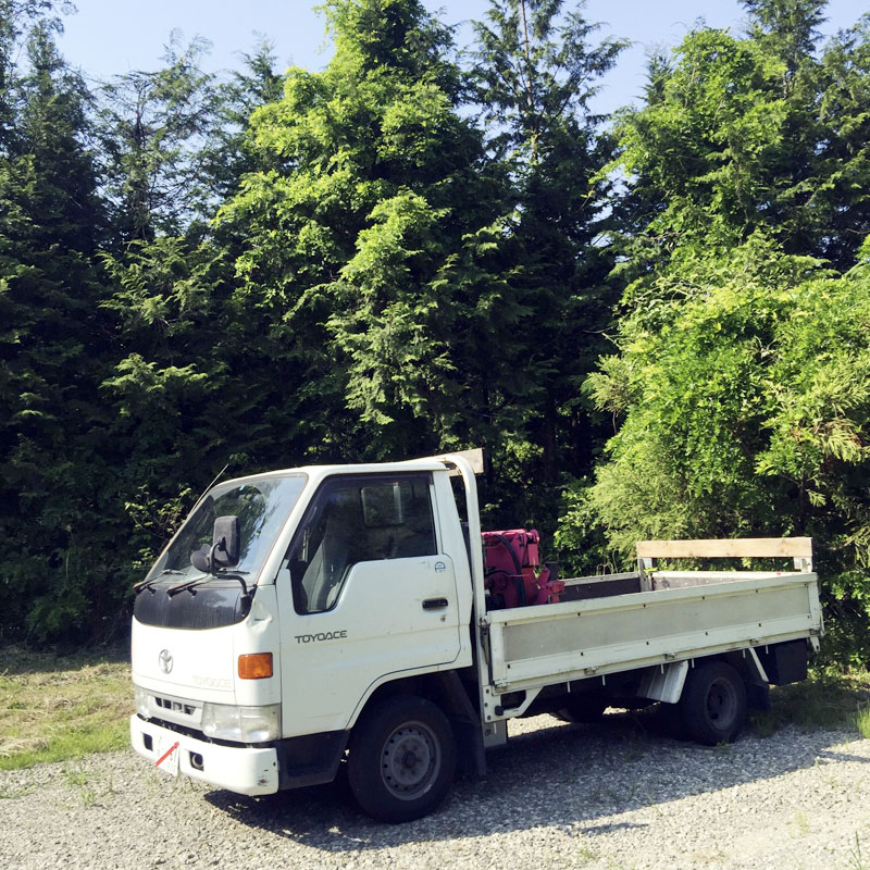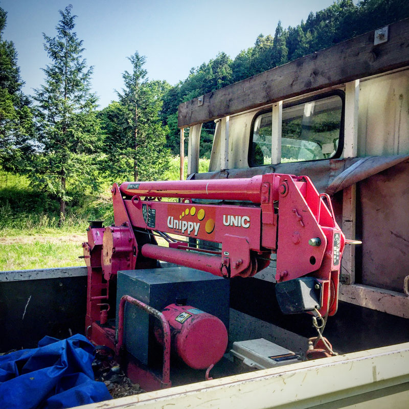 昼過ぎに鳴海くん、廃車にするユニック車で到着。埼玉から仕事場まで乗ってきてくれました。