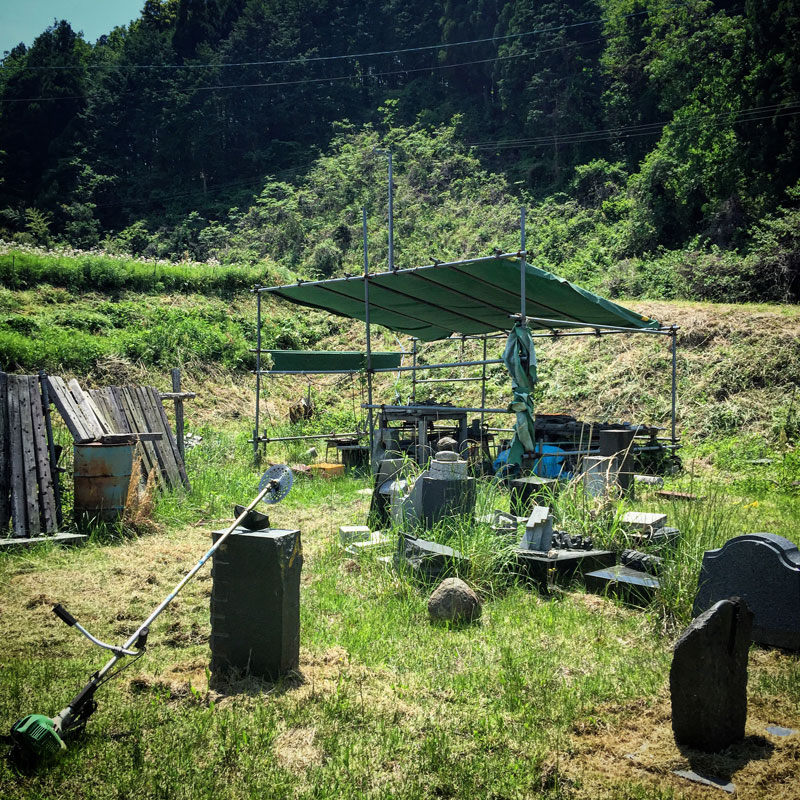 朝、友だちを駅まで送ってたら、仕事場へ直行。草刈り。今日も真夏の様でバテる。