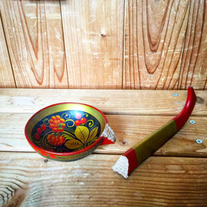 カスピ海の北西に位置するロシア連邦内のカルムイク共和国での彫刻シンポジウムに2年連続、それぞれ2ヶ月弱参加して、いよいよ本当にサヨナラって時に、滞在中の料理を作ってくれた女性料理人のアラがプレゼントしてくれた木製の大きなおたま。