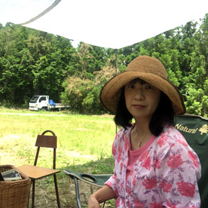 タープの下の石テーブルでランチ