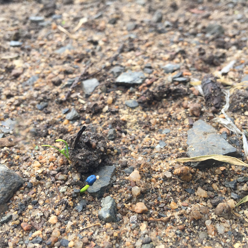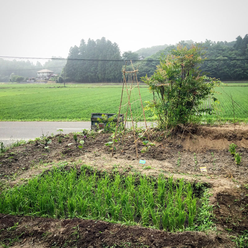 まだ数ミリの双葉なのに間引いて口に入れると、もう充分ルッコラ。ゴマの香りと独特の苦味。美味しい。ついつい畑でつまみ食い。