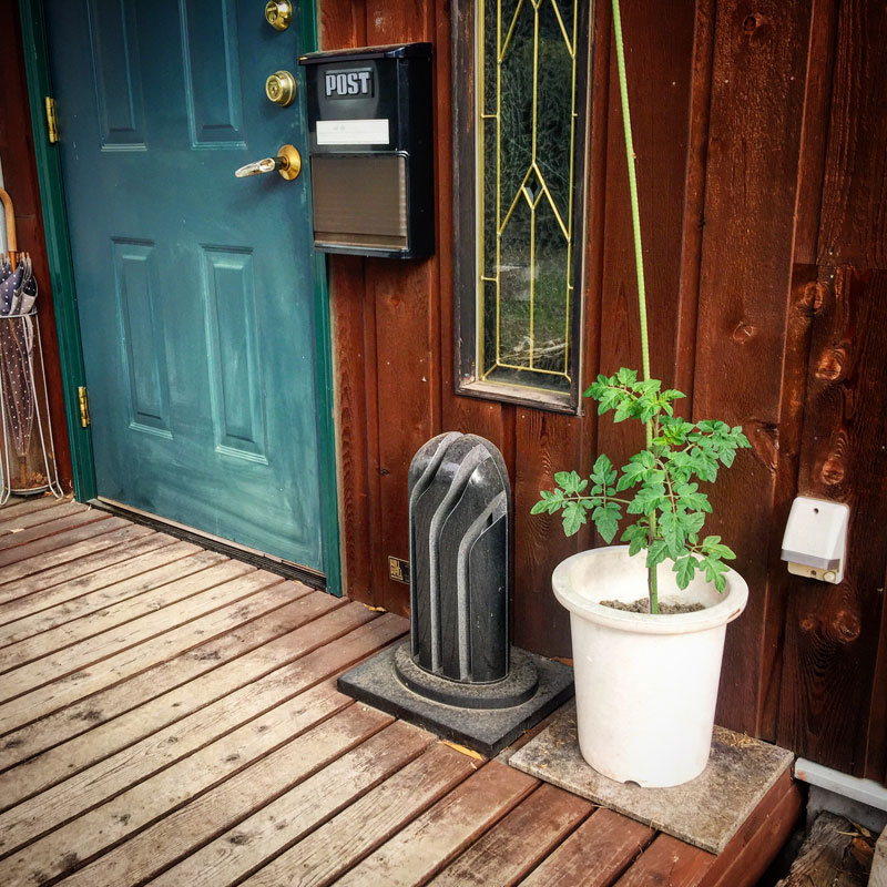 トマトは雨に当てちゃいけないから、軒下にミニトマトをひと鉢だけ。