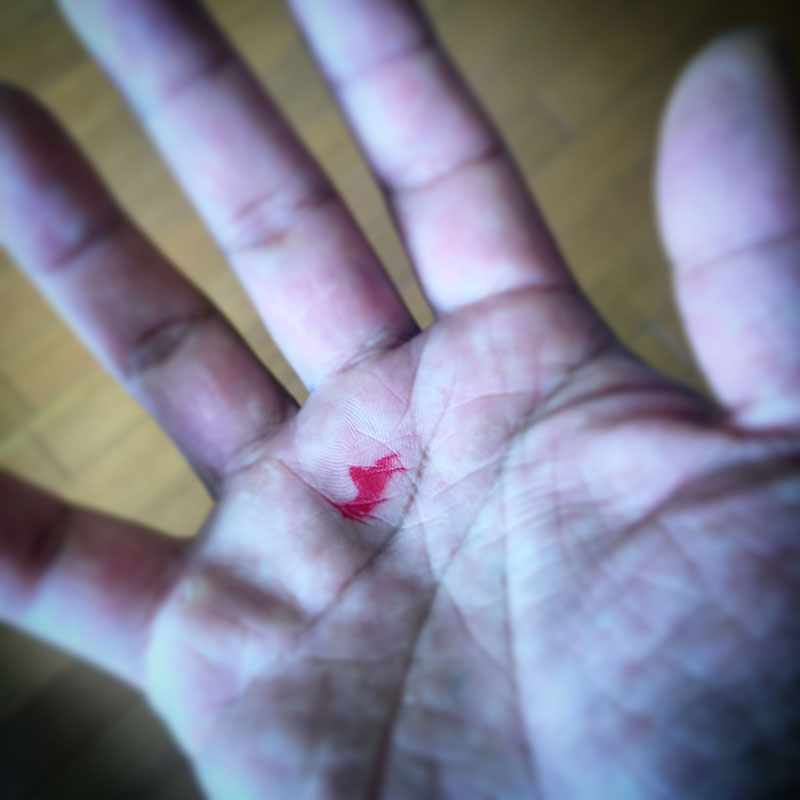 朝起きたら手に赤いシミが。血ではない。でも寝るまで無かった。布団の周りにマジックも無い。ミステリー・怖
