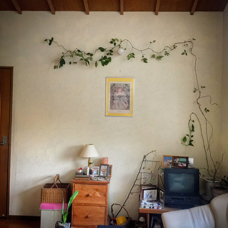 居間の壁を飾ってくれていたポトスがかれてしまって、鉢で再生してるんだけどなかなか伸びない。大震災の前はこんなだった。