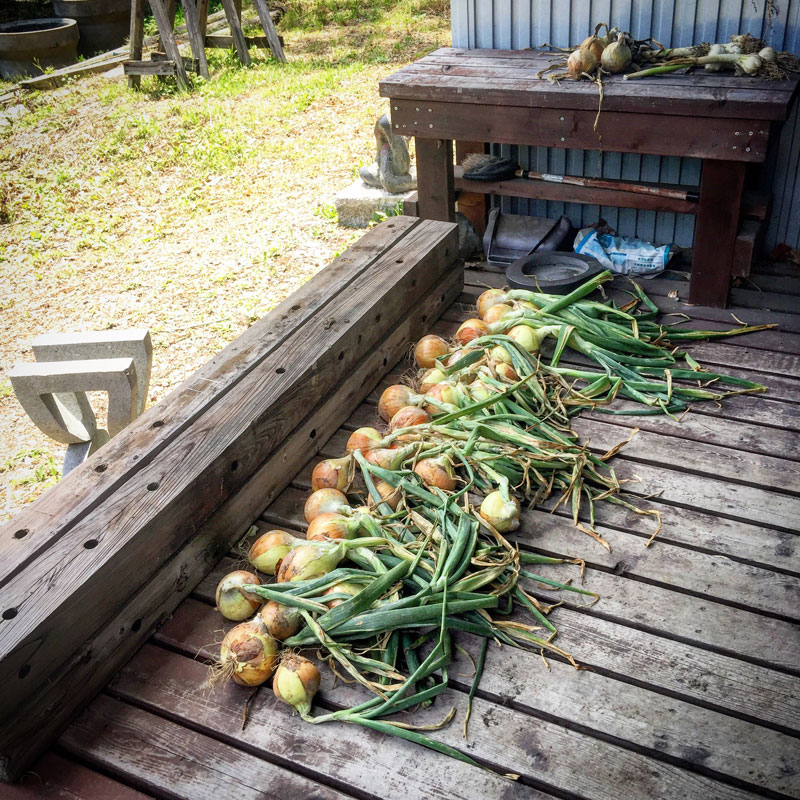 昼食に戻ったら、玄関のウッドデッキがまた八百屋さんの様になっていた。ありがとうございます。