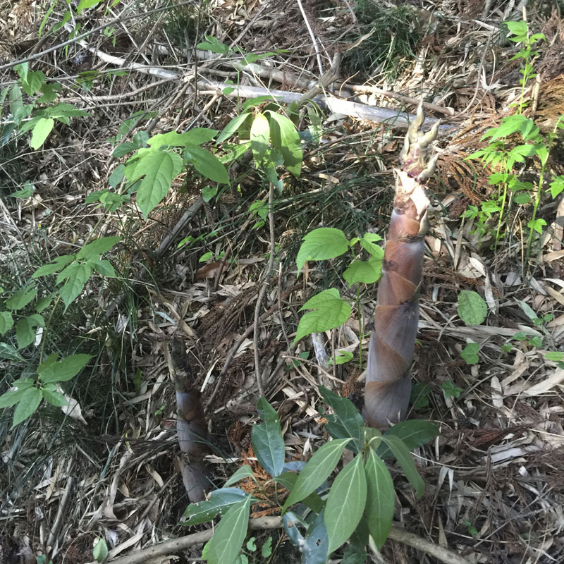 雨後の破竹がガードレールのように出まくってます(全部倒しながら行きます)。