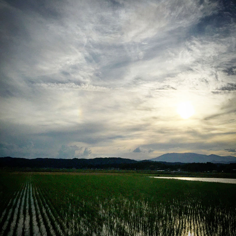 カミさんと夕食前に家の裏の田んぼに散歩へ。