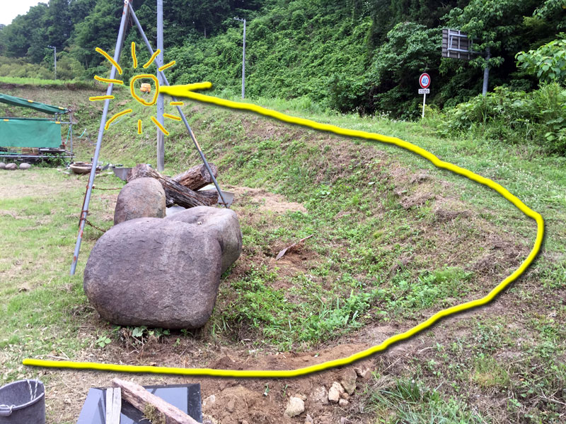 仕事場には水道が通ってないので、水を使う磨き仕事の時は土手の上にあるタンクまで毎日自宅の水道で組んだ水を、ポリ缶で運ぶのです。朝と昼に。ただでさえ40Lを持って土手を上るのが辛くなってきているのに、排水のために昔掘ったところが歩きにくくて辛い。今朝石を積んで砂と合わせて平らに。