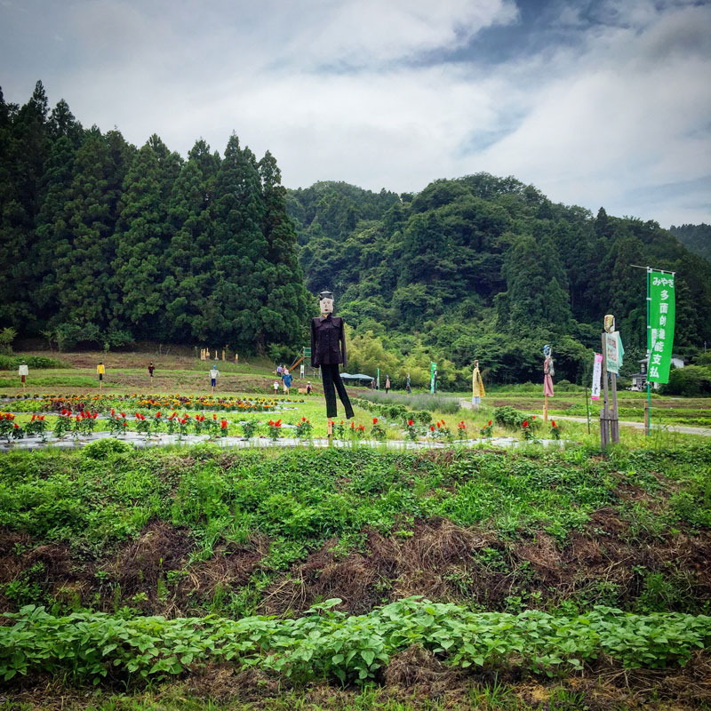 仕事場に戻る。田んぼアートのまわりは案山子(カカシ)でいっぱい。