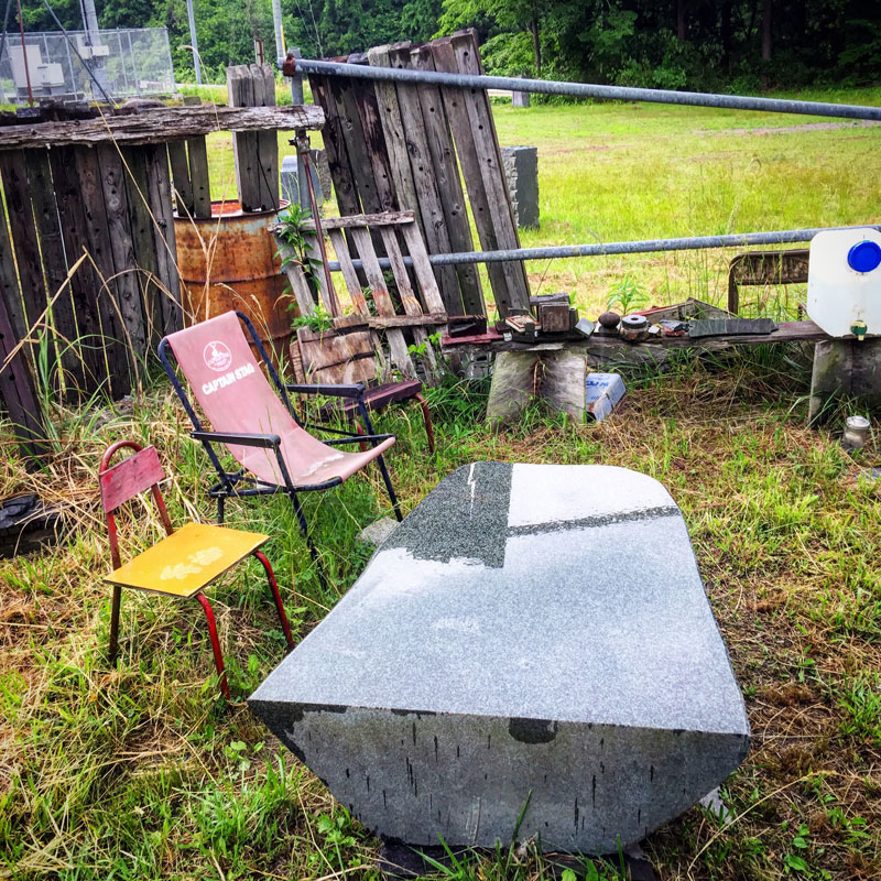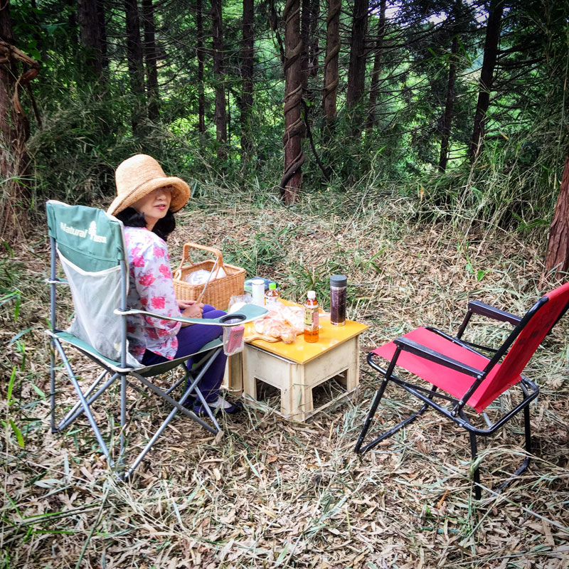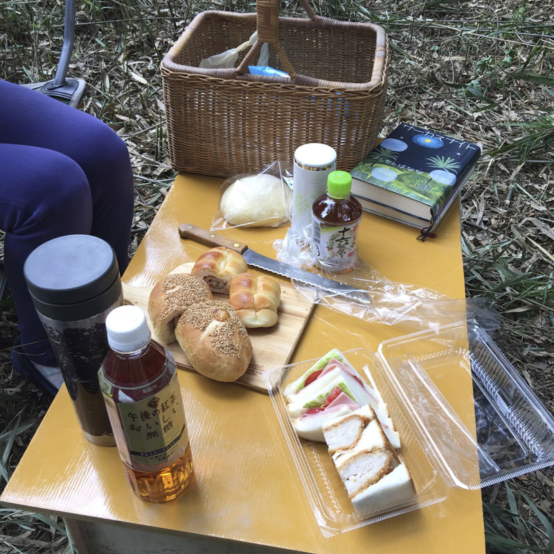 昼食時に、カミさんが美味しいパンを買って仕事場まで来てくれたので、仕事場の木陰でランチ。