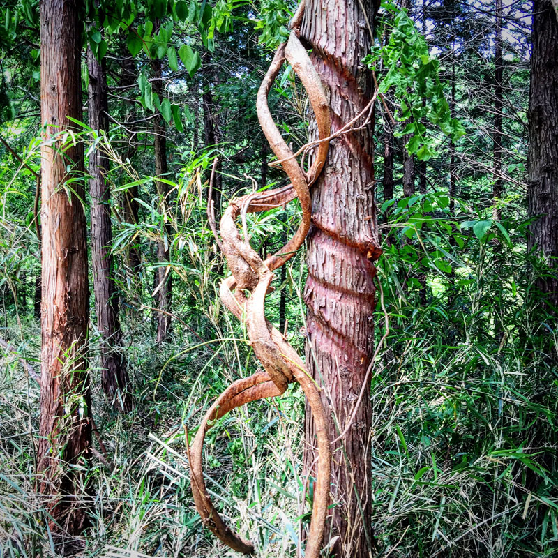 昨日、杉の木を締め上げている葛をノコギリで切りまくった。全部で50本以上切ったのではないだろうか。