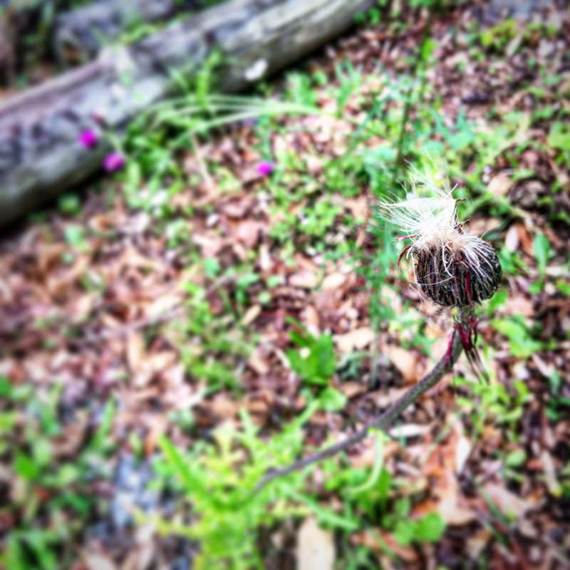 山から採ってきて植えたアザミの花が綿毛のついた種になった。こぼれて来年いっぱい咲いてくれると良いな。