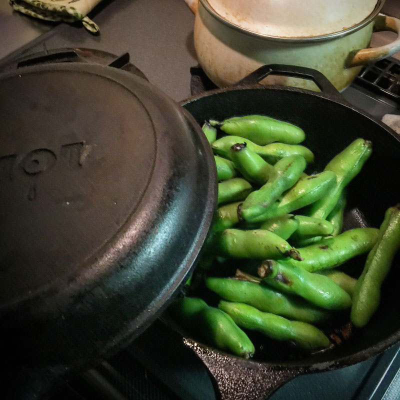 昨日、地元のレストランでいただいたソラマメ、ダッチオーブンで蒸し焼き。